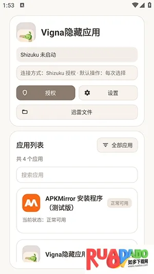 Vigna隐藏应用专为注重隐私的用户设计,支持选择性隐藏各类应用,有白名单黑名单机制及检测验证功能。后台轻量运行,操作极简,能有效防他人私自打开应用,还具备强大隐藏、检测、防卸载等功能。