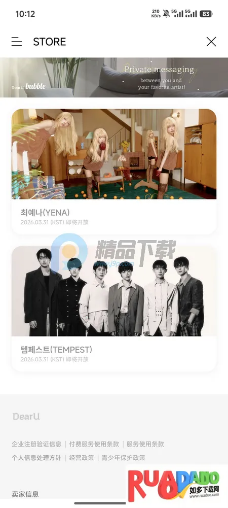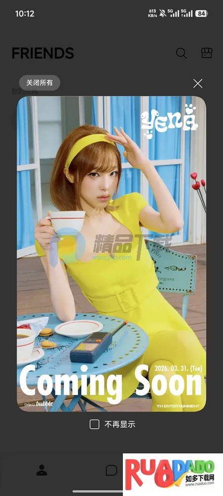 YH bubble2026官方正版是乐华娱乐推出的专属粉丝互动应用,预计2026年3月31日开放。粉丝能与旗下艺人互动,有独家内容库、直播等功能,还有多语言回复等亮点,使用中有注册、添加好友等操作及常见问题解答。