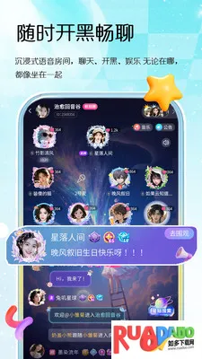 2. 声音频道情绪共振,24小时开放多主题声音空间,从游戏复盘到兴趣畅聊,用多元声线构筑心灵欢愉角落。