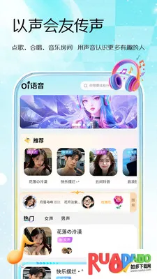 3. 才艺声域有魅力共鸣,开放点歌台等声音舞台,多种音乐互动玩法,展示才华结识有趣灵魂。