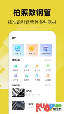 数钢管AR2026官方最新版本是工程领域实用工具集合应用,有精准计数、高精度测量、工程计算、考勤打卡相机等功能,现会员年终特惠。