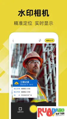4、有专为工程人员设计的考勤打卡相机,方便记录工作时间地点。