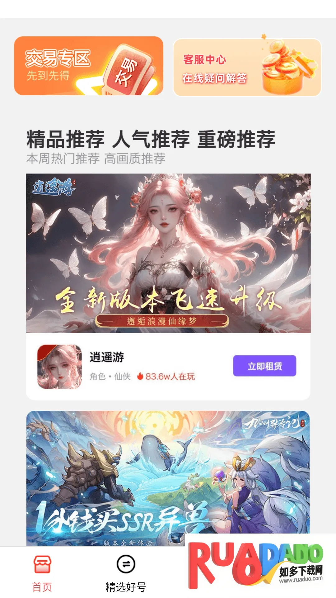 1. 专为游戏爱好者打造,能在线完成账号买卖、租赁及估价,操作无限制,满足不同用户需求。