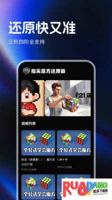 指尖魔方还原器是一款手机智能魔方计时器教练App,集3D花式转动、拍照秒出还原公式、毫秒计时、打乱生成及公式库视频教学于一体,支持多种魔方,随时随地助你从新手变大神,新版已修复bug。