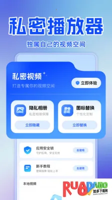 私人看免费播放器,有独属视频空间,内容仅自己可见。支持多格式高清播放,能自由挑选应用图标并隐藏,还有隐私相册,可一键加密照片视频,全方位守护隐私。