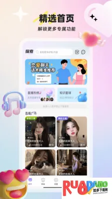 1. 一站式满足社交与悦己需求,集同城直播、兴趣社群、精选悦己商城于一体。
