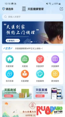 天医健康管家是专注非药物自然疗法的养生保健平台,以天医导引技术为核心,整合理疗师资源与养生知识,构建线上线下服务体系,提供全周期健康方案,新版更新了隐私政策。