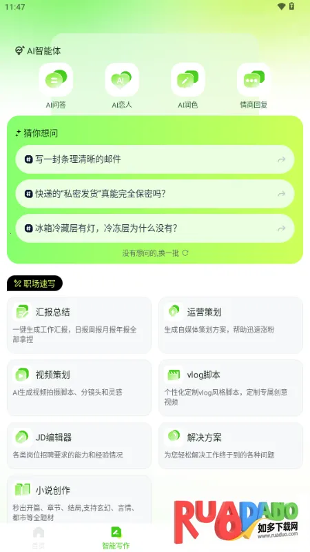 2、在智能写作页面,为大家提供了职场写作、生活创作、学习辅助等不同类型的创作服务。