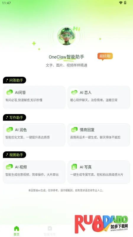 1、OneClaw智能助手整合主流智能模型,覆盖多种使用场景,能一站式满足学习办公与日常创意需求。