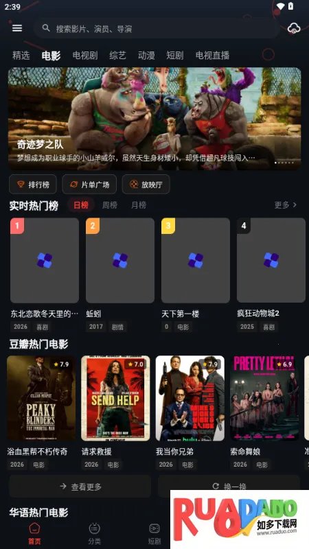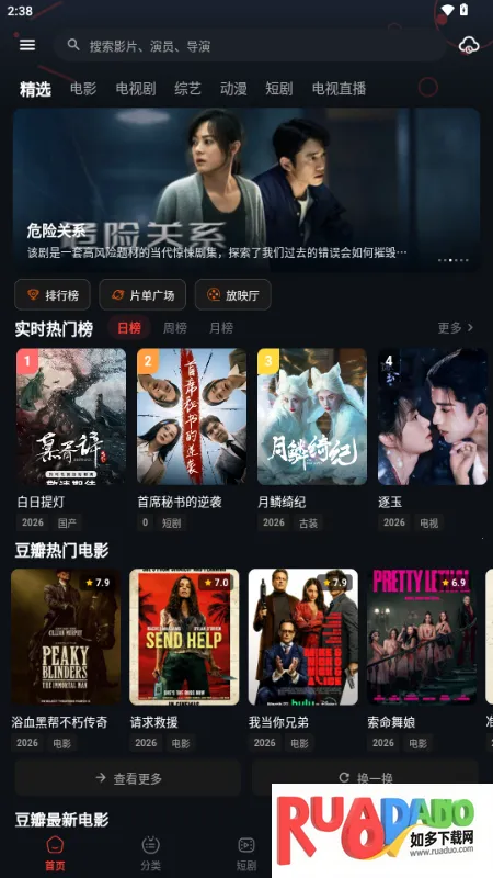 螃蟹视频是安卓观影应用,资源丰富,含影视剧、综艺等。优化短剧模式,接入卫视直播。增设专区,功能齐全,支持离线缓存、弹幕互动、投屏。播放线路足,运维稳,无广告,操作简单,是追剧好选择。