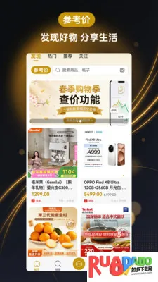 参考价比价软件是生活购物助手,聚合多平台商品信息,能搜索对比价格、查历史价,展示价格趋势。新版上线春节专题,汇集年货好物,可快速查价防虚假促销,助你理性消费,让生活更简单。