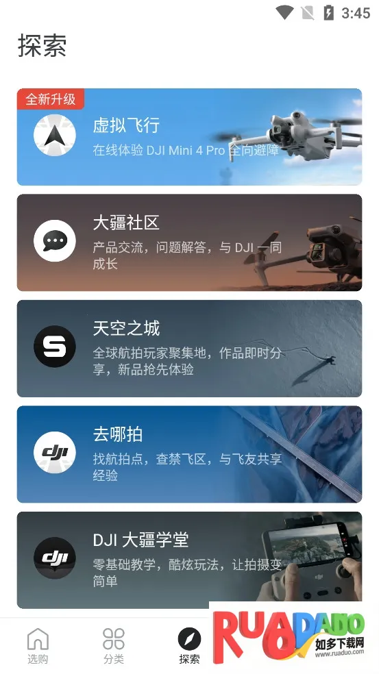 4. 软件亮点众多,官方直购提供销售及售后支持,新品首发大疆最新款无人机,界面优化购物轻松,视频介绍助快速了解产品特性,多重安全保障支付放心。