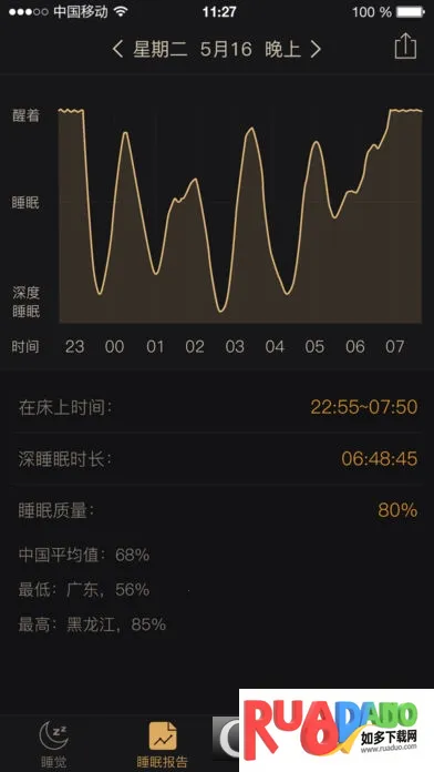 3. 对比反馈睡眠状态、时长与质量等数据。