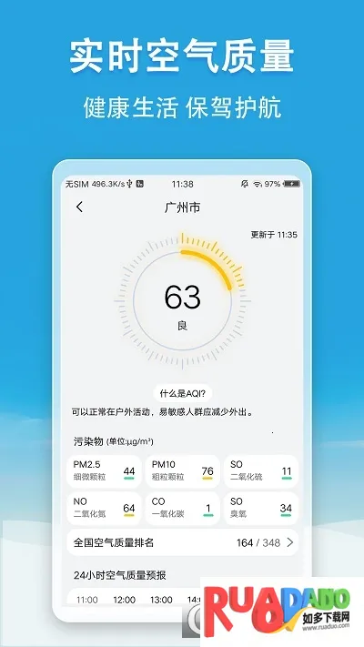 2. 权威天气预警及空气质量指数,满足天气查询需求,让出行更安心。