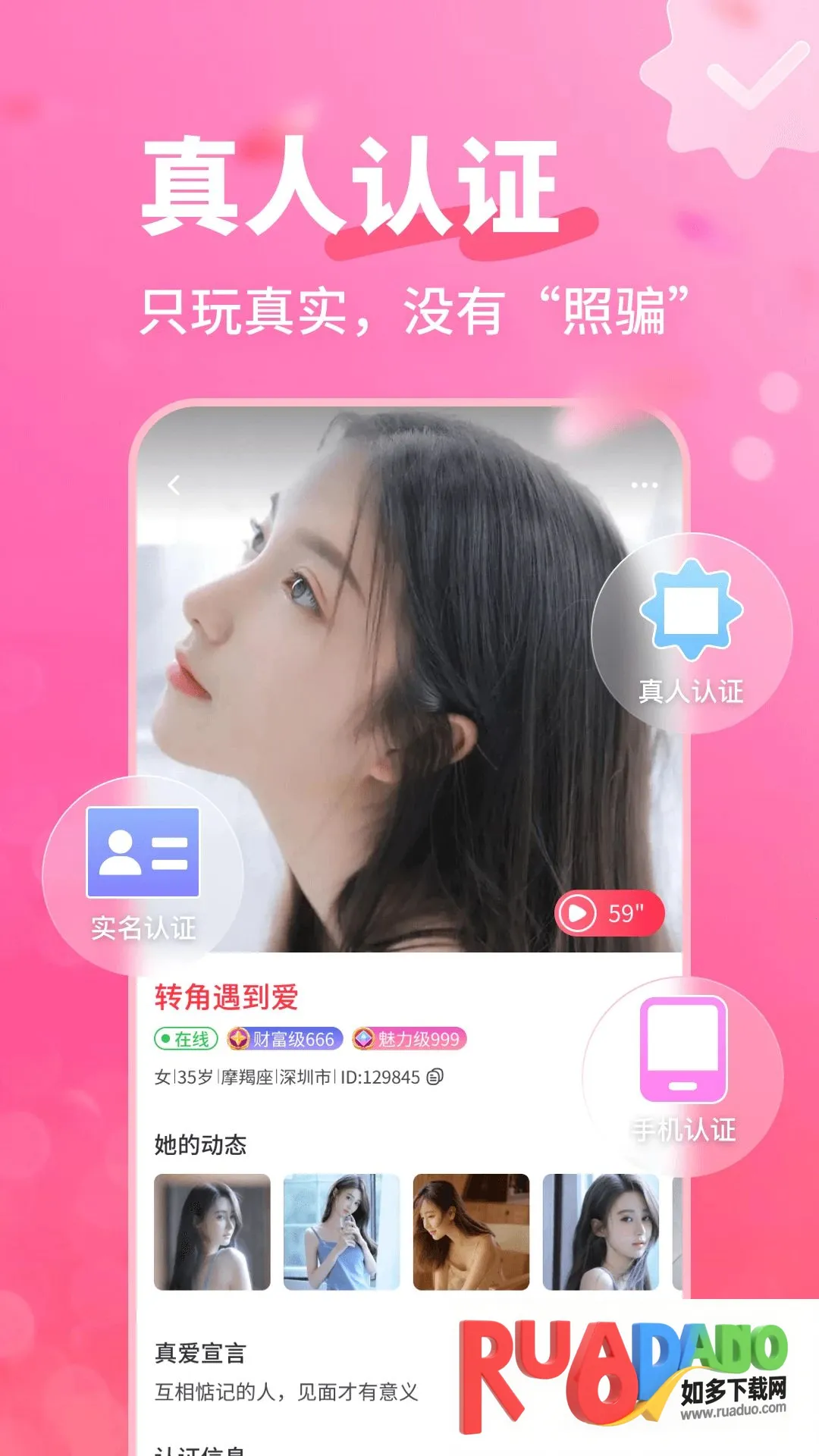 2. 有着严格的真人认证人脸核验,杜绝虚假信息,能让你相遇真实,交友安心。