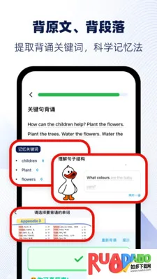 4、教材全覆盖,主流教材全支持,各年级同步,英文原著等也能读,背诵有三种模式,还能智能记忆单词,记得牢忘不掉。