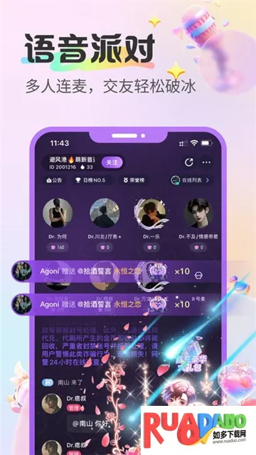3. 多人连麦在线实时语音,不同风格语音房等你加入,不用担心冷场。