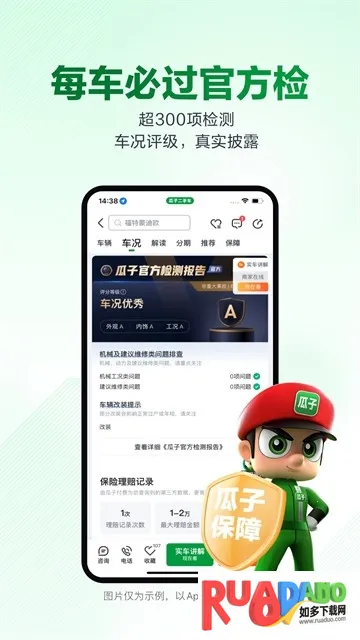 2. 车况透明全披露,每车必过官方检,200多项车况检测报告100%披露,还有首创的双轨定级标准。