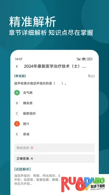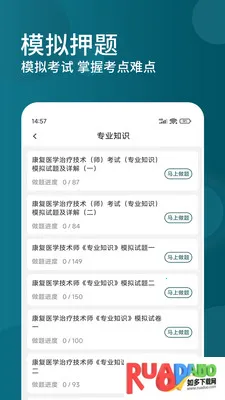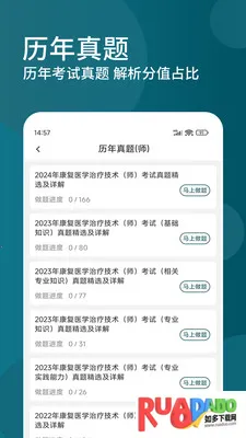 康复医学治疗技术精题库 2026 最新版本,针对全国康复医学人员专业技术资格考试。涵盖士、师、中级相关知识,有章节练习、历年真题、模拟押题等功能,新版更新了题库,助考生学习通过考试。