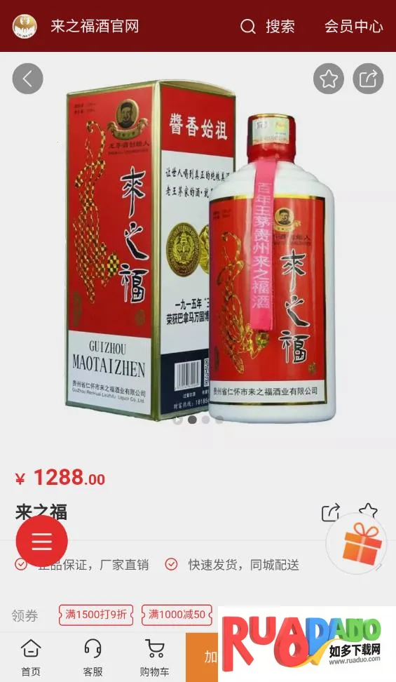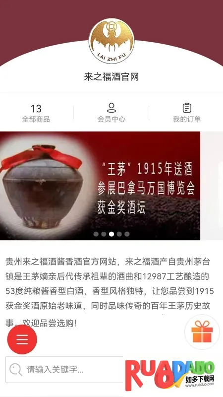 来之福酒是商家自营的酱香型白酒购买APP,酒产自贵州茅台镇,由王家嫡亲后代传承百年工艺酿造,为53度酱香型白酒,重现获奖老味道。现更新了LOGO和启动页,版本号1.0.8 。