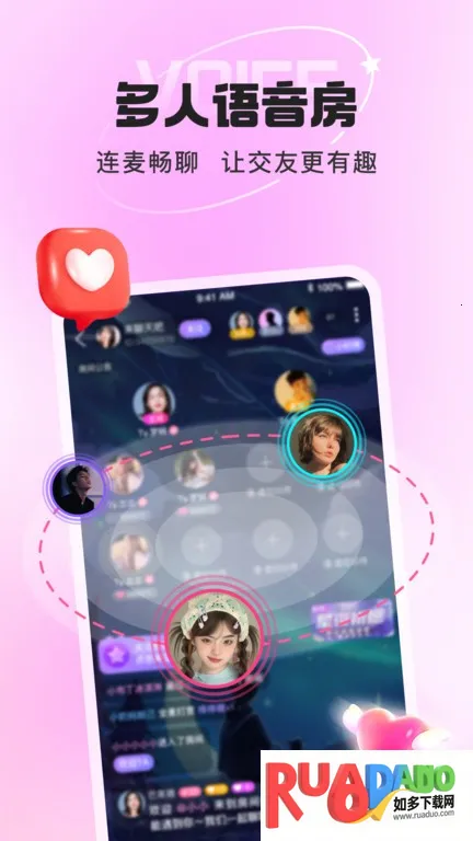 1、在线语音交友玩游戏K歌嗨聊,能消灭孤单。