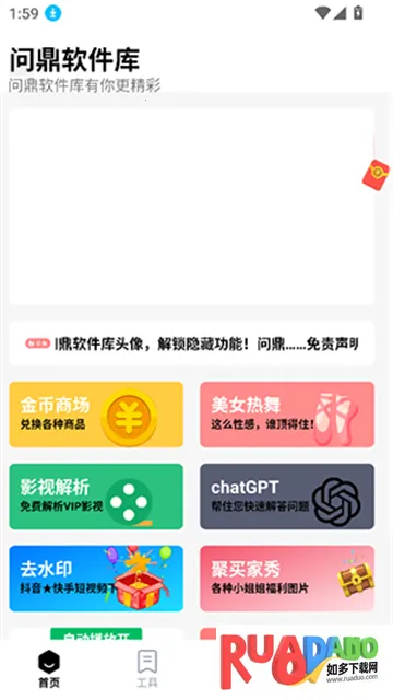 问鼎软件库2026最新版是集成软件,有极简下载体验与多功能工具箱。内置实用小工具,更新便捷运行稳。支持语音文字输入,资源全且更新快,界面简洁易上手,还保障安全,一键下载,免验证登录。