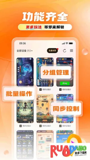 2. 可同时操作多台云手机,实现多账号同时挂机刷图,提升练级效率。
