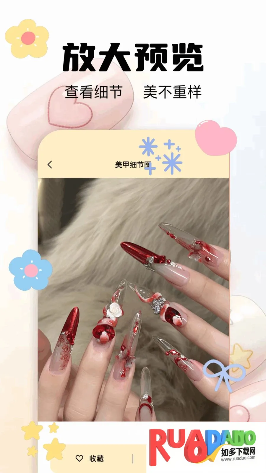 3. 美甲收藏功能可让你随心整理喜爱的款式,方便随时查看,还有放大预览功能,细节之处毫不妥协。
