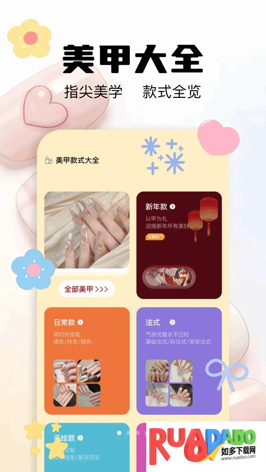 1. 汇聚海量美甲款式,涵盖新年主题、日常搭配、经典法式及潮流款式等,提供丰富灵感。