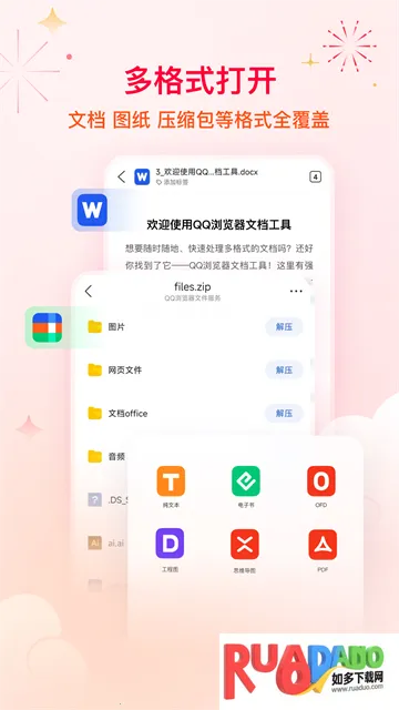 想轻松用 QQ 浏览器打开各种东西吗?它超厉害的!不管是学习资料、办公文件,还是追剧视频,都能一站式搞定。智能搜索超懂你,能自由切换多种引擎,全网通搜打捞资源,AI 搜提炼核心。多模态搜索超方便,打字、拍照、语音搜都行。遇到复杂问题,AI 还能深度解答。视频播放有 AI 加持,加速播告别等待,实时字幕、多国语言翻译,全场景观看超丝滑。平板适配超棒,大屏原生排版,沉浸观影。办公方面,能打开 90 多种文件格式,实用工具箱可处理文档各种问题。学习有智能辅导,难题拍照 AI 拆解。还有热点资讯,聚合热榜,精准推荐。用 QQ 浏览器打开各类内容,省心又省力,超好用,快试试!