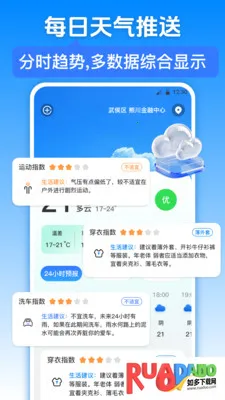 3、能获取包括温度、湿度、风速、降水概率等准确的天气预报,还有小时级和逐日预报助您规划活动。