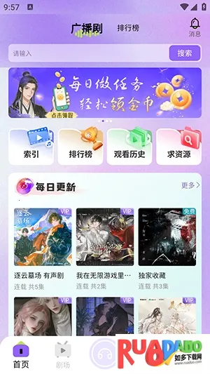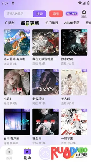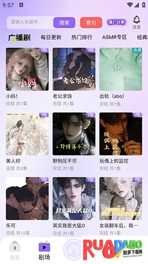 1、软件首页提供多种热门广播剧资源。