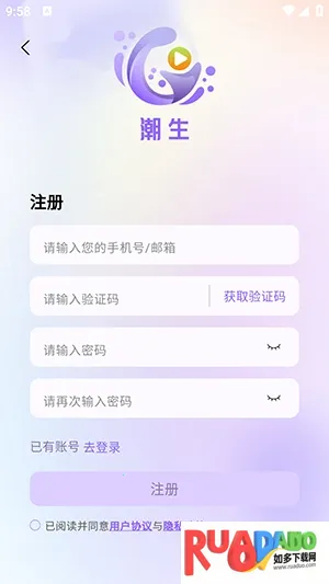 2、没有账号的用户点击立即注册。