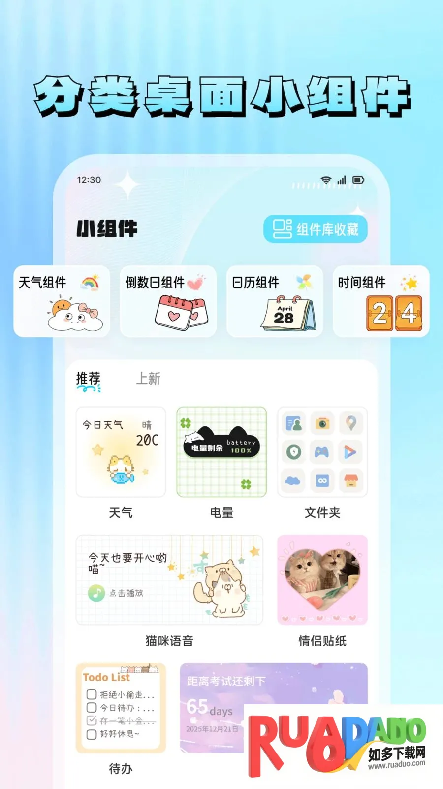 4. 可自由创作丰富图库来打造个性形象,还有天气、倒数日等实用桌面小组件美化桌面。