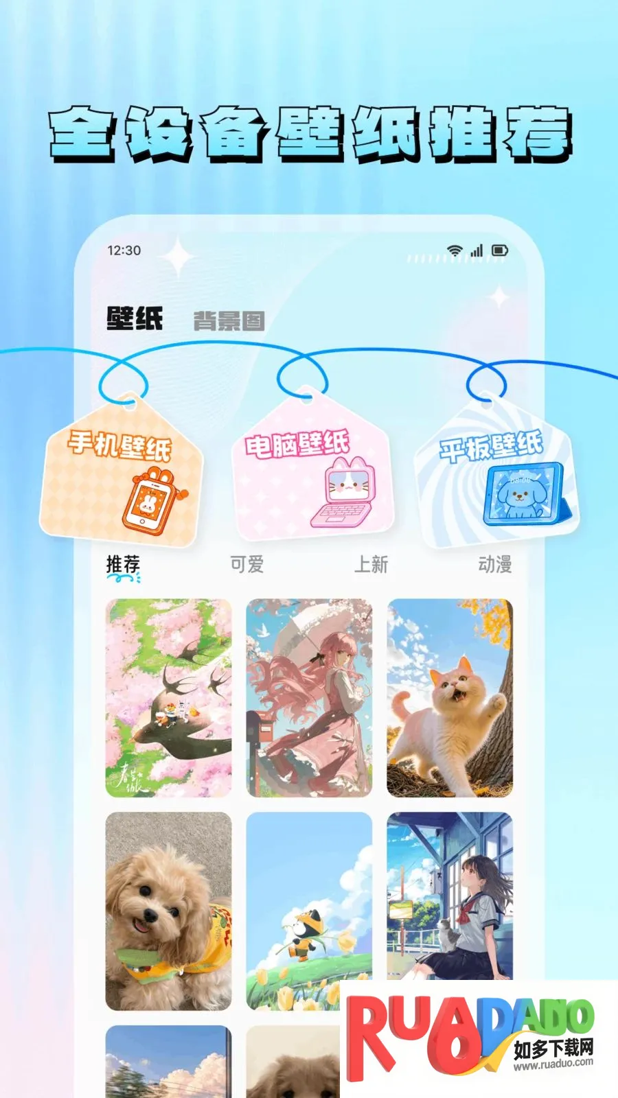 3、全设备高清壁纸,动漫萌宠等多风格任你选,且高清无水印。