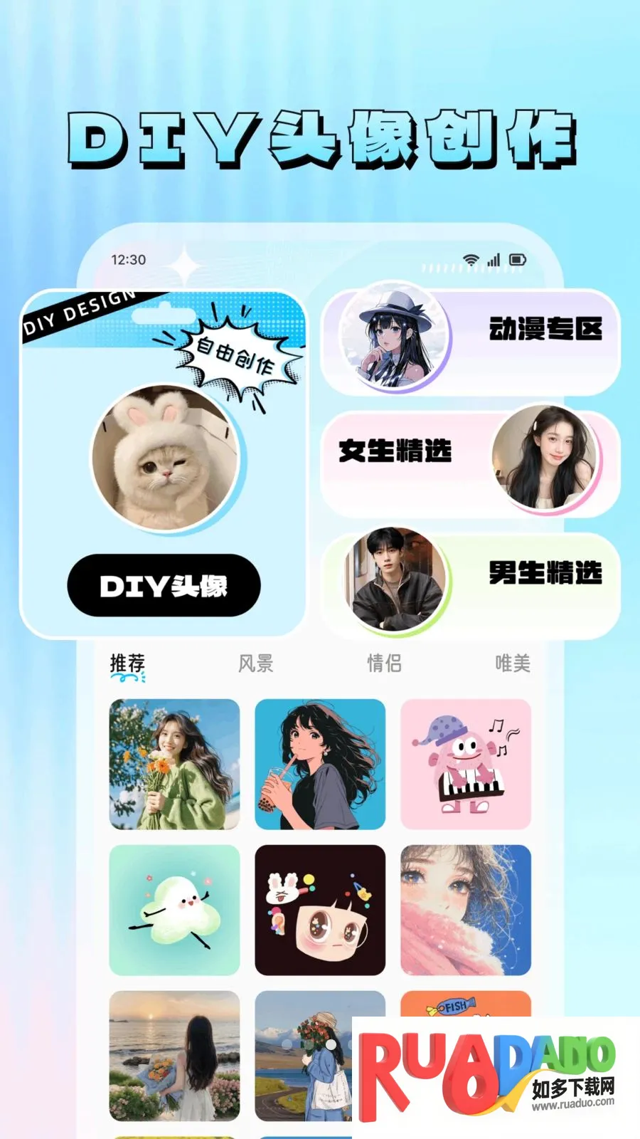 1. 集多种功能于一体,涵盖表情包、壁纸、DIY 头像、桌面小组件等,一个 APP 搞定所有美化需求。