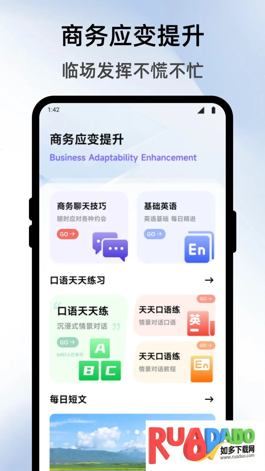 3、拥有独有的工作应变小助手,可提升商务沟通与英语口语能力,让不同职场阶段的人工作更高效从容。 这款工具能满足多样需求,助力用户在工作中更顺畅地开展各项事务,值得尝试下载使用,体验其带来的便利与高效,感受全新的工作方式,为工作增添助力,提升工作成果与效率,让工作变得更加轻松且出色。