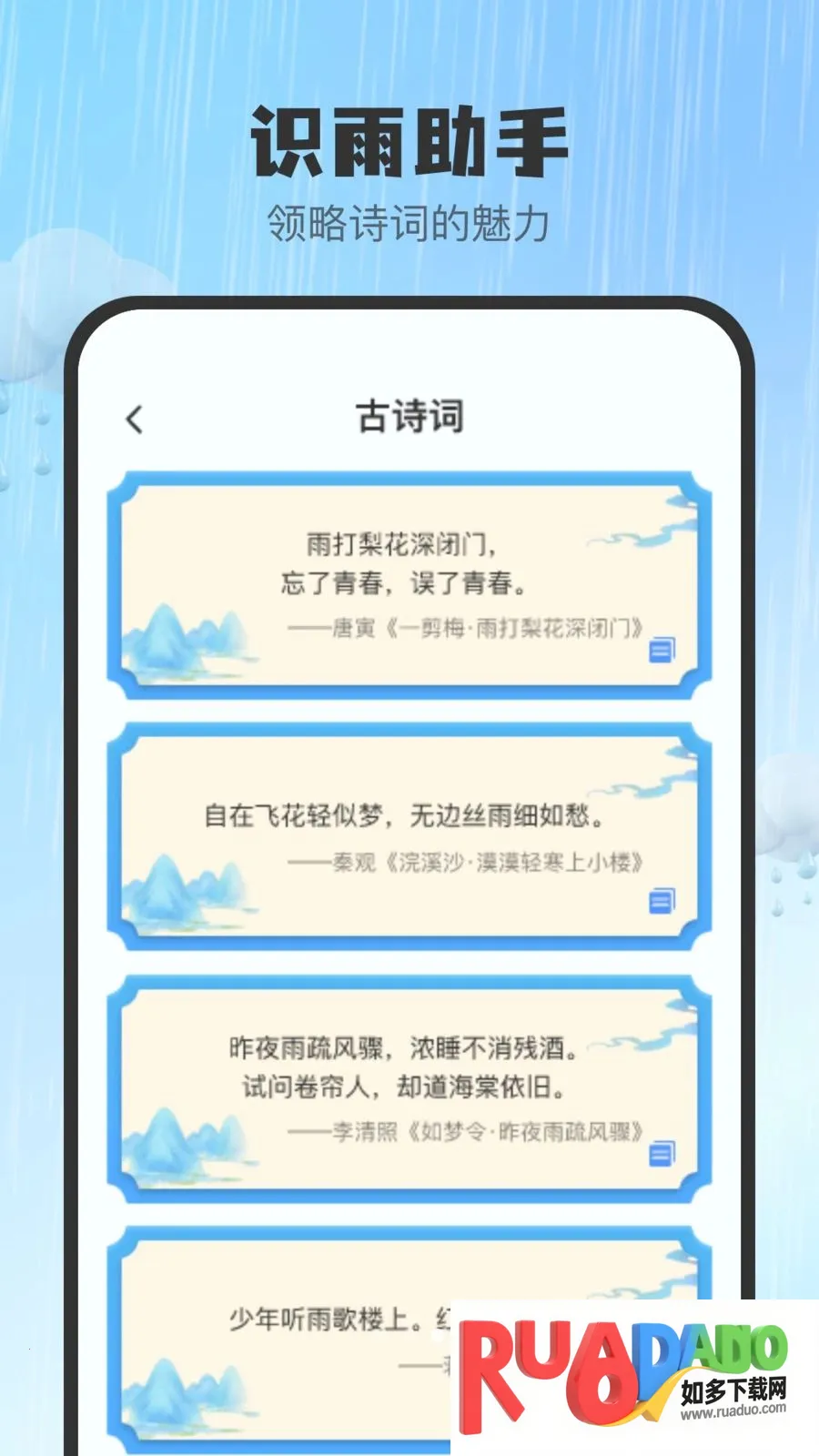 4. 含有各种雨声相关古诗句,可让人感受文化熏陶。