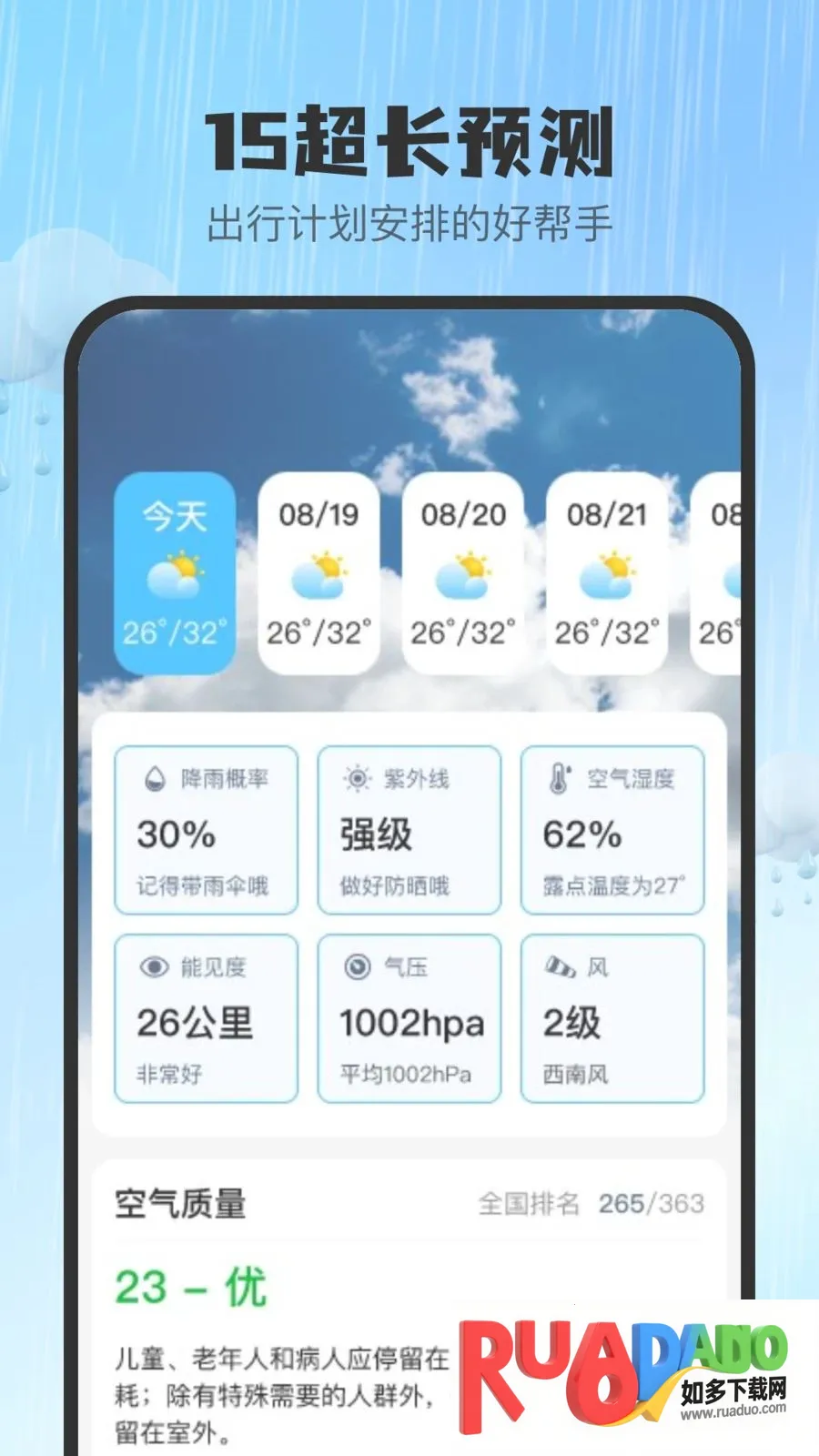 3. 具备15日天气预测,方便提前规划出行安排。