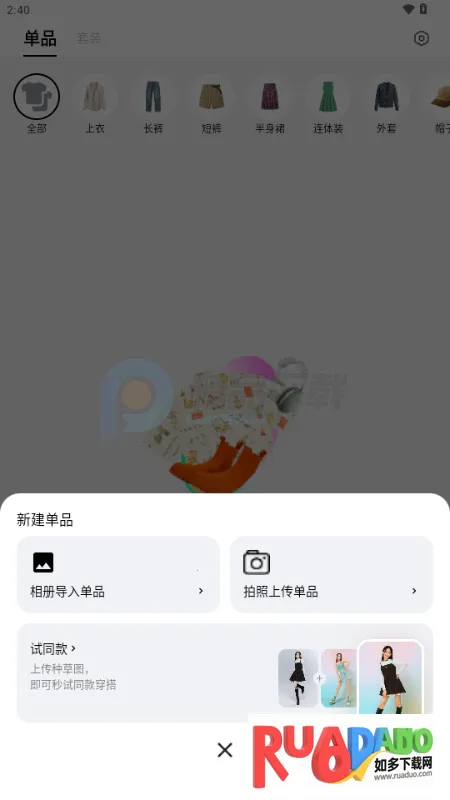 4. 只需上传一张人物图,AI自动分割单品,智能抠图去背景,让衣橱搭建更高效。