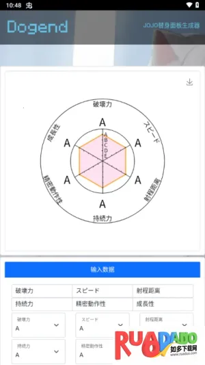替身面板生成器安卓版可完美还原JOJO原作替身六维面板。能填数值、设定能力、上传图片打造原创替身,高度还原面板属性,操作简单,几秒钟即可完成制作,还能分享高清图,是JOJO同人创作实用工具。