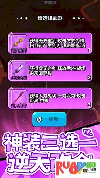 2. 肉鸽元素融合,采用肉鸽割草玩法,每次游戏体验因随机元素而不同。
