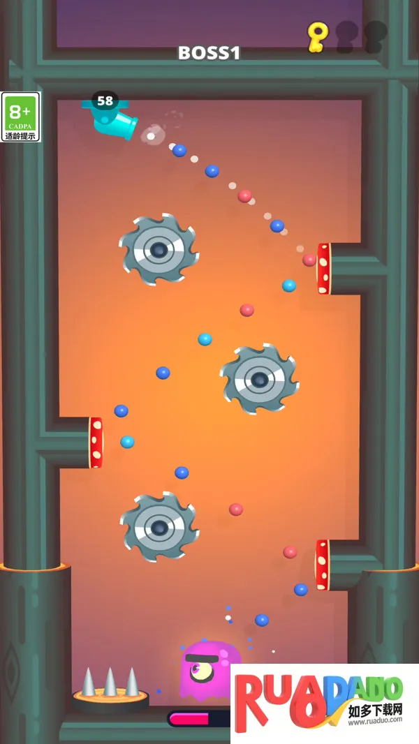 2. 没有固定解法,全靠即时移动场景里的东西来实时调整弹珠路径,想法多就能玩出花。