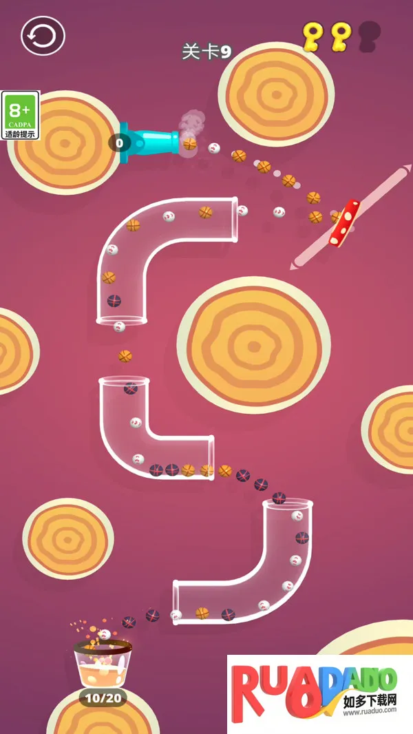 游戏里,你能用手指拖拽旋转关卡中的障碍物和机关,改变弹珠发射后的路线,目标是让弹珠填满所有指定的桶。每装满一桶完成一关,就能解锁新大炮,新大炮会射出不同数量或特性的弹珠,增加玩法和挑战。游戏包含各种物理互动元素,像弹簧、传送带、风扇等,得灵活运用它们引导弹珠。弹珠的反弹滚动轨迹超真实,手感自然流畅,瞄起来超带感。而且没有固定解法,全靠即时移动场景里的东西调整弹珠路径,想法多就能玩出各种花样。收集元素也是亮点,不断解锁造型功能各异的大炮,还有超稀有的绝版大炮等你发现,激发探索欲,耐玩度高,不容易腻,能让你玩很久。