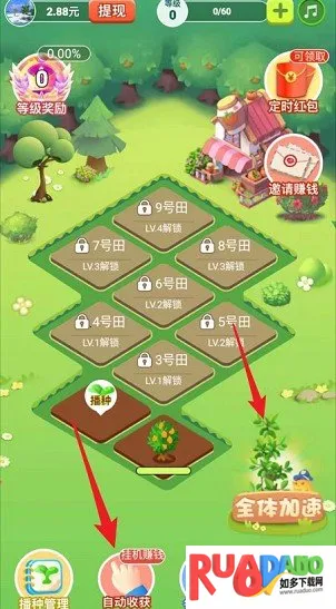 2静态收益超高,升级果树浇水能获大量金币现金奖励,活跃30天得价值2030元当季畅销水果,免费包邮。