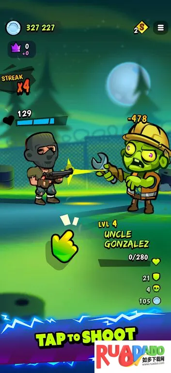2. 有着卡通版本僵尸,能减轻玩家游玩压力,放松心情,提升射击准确率。