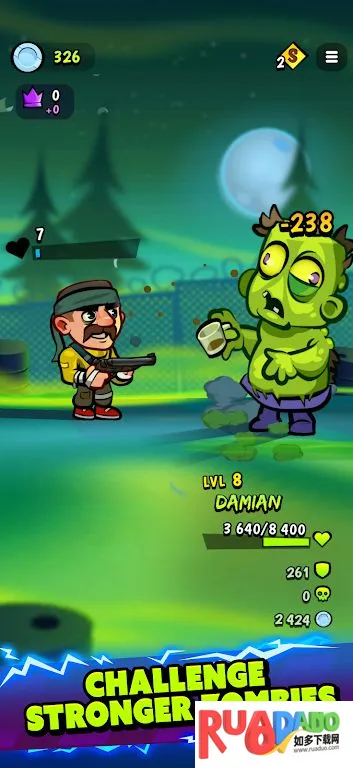 3. 能自定义英雄,用头盔、盔甲、手套、靴子和武器提升伤害、防御、暴击率等属性,打造完美僵尸猎人配置。