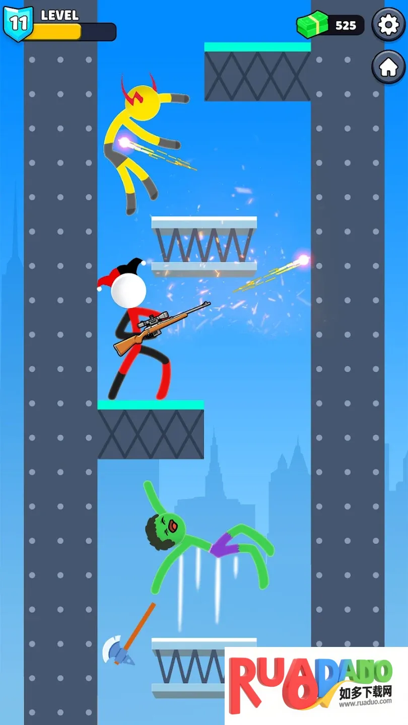 4、需精通战斗技巧赢史诗战斗。这款《愤怒的火柴人:史诗对决2026下载》能带来丰富精彩体验。玩家能在其中尽情享受激动人心的战斗过程,挑选自己喜爱的武器来武装自己,在战斗中巧妙躲避对手攻击,同时努力击倒那些愚蠢的对手。而且,只有精通战斗技巧,才能赢得史诗般的战斗胜利,感受游戏的独特魅力,快来下载体验吧。