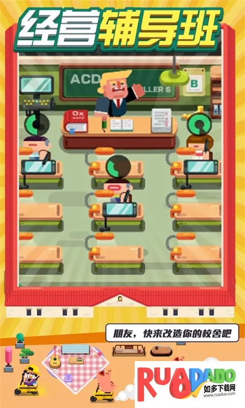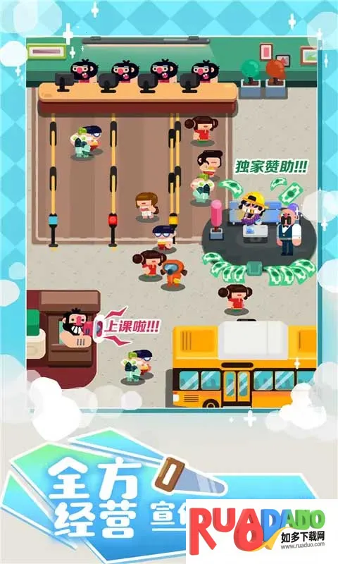 1. 玩家可自由经营学校,决定排课、放假等,还能开放广告大力招生,引进名师课堂,打造国际化顶级培训学校。