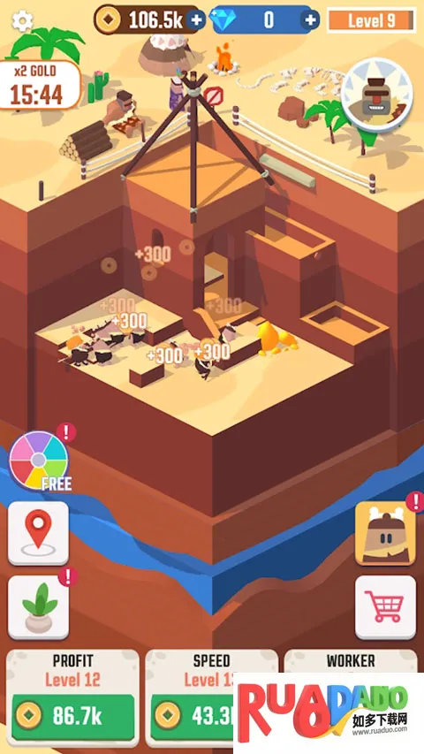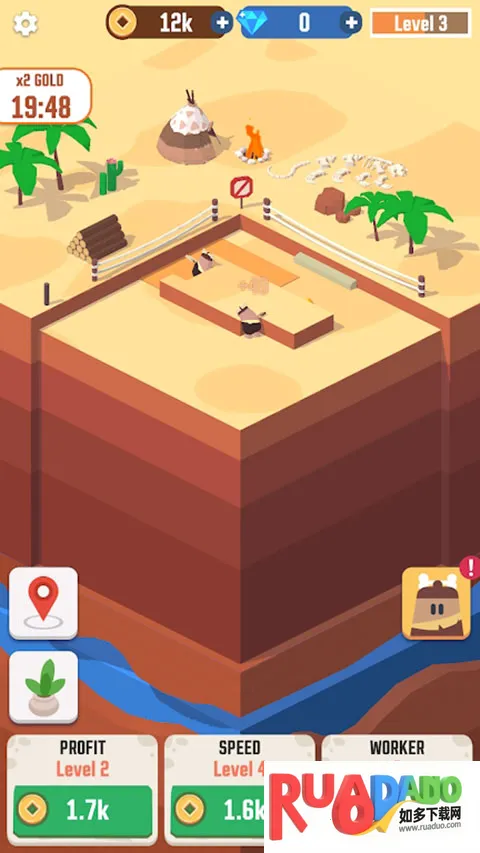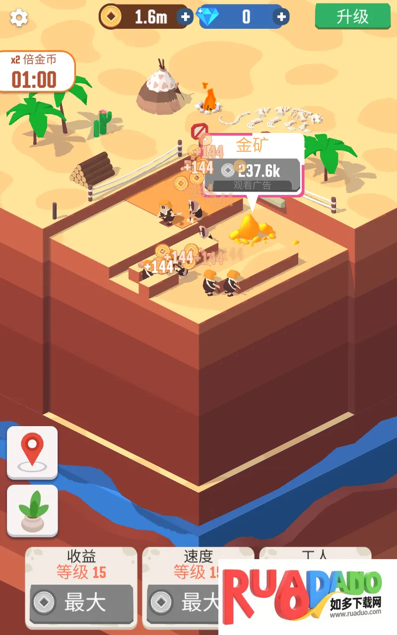 2. 操作轻松,通过指尖点击提升工人挖矿效率获取财富,还能自由建造各种建筑。
